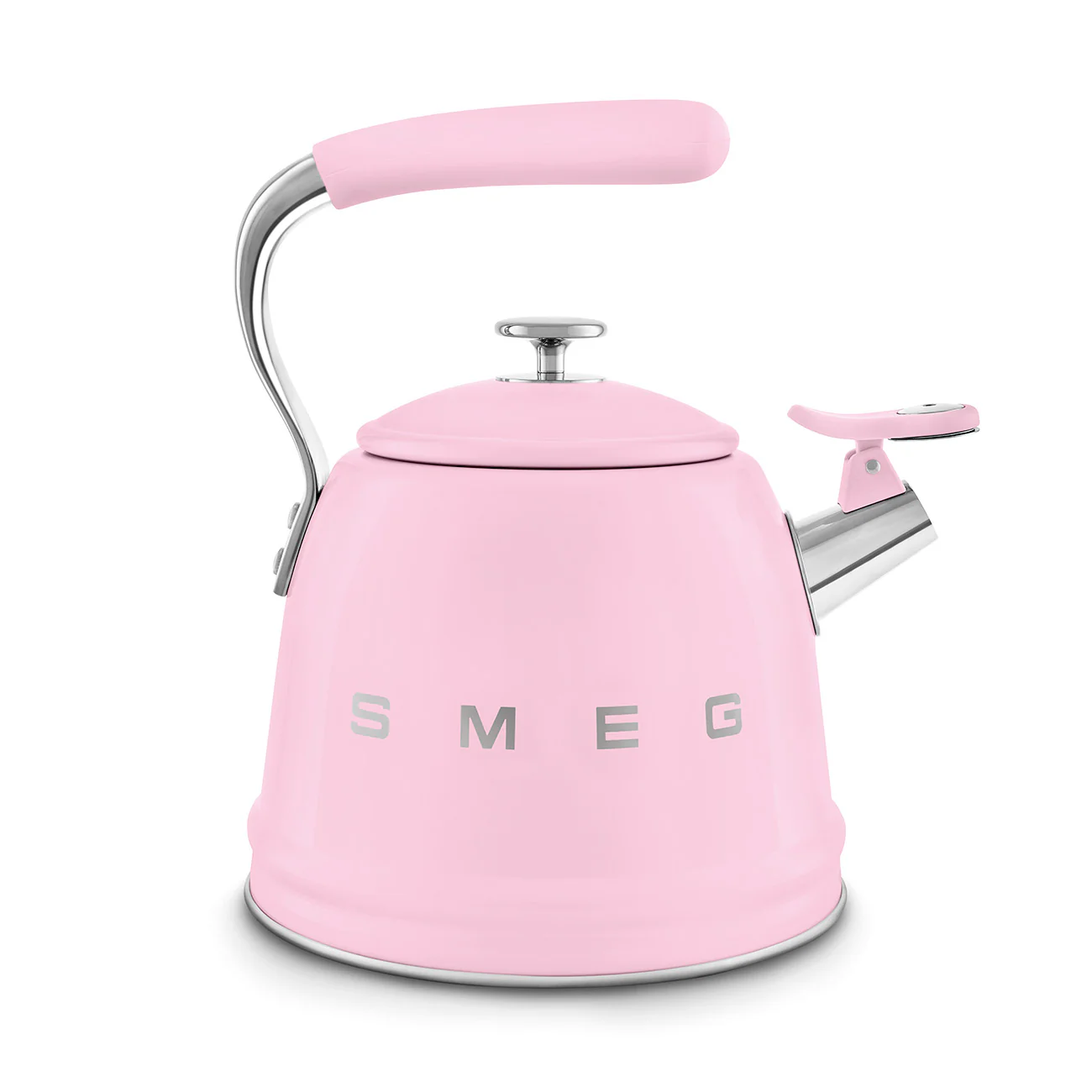 The SMEG Retro-Style Kettle in Pink brings a soft, playful twist to classic mid-century design while delivering everyday performance. Wrapped in a smooth, glossy stainless steel body with polished chrome accents, this stovetop kettle holds 2.3 liters—ideal for morning coffee, afternoon tea, or any time you need hot water fast. A balanced handle, controlled-pour spout, and sturdy base make it as practical to use as it is beautiful to display.